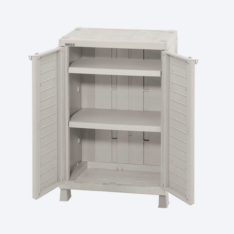 Armario Mediano con 2 entrepaños ajustables que resisten hasta 25 Kg cada uno. Fácil de armar, mover y limpiar. Con la resistencia y beneficios del plástico. Excelente capacidad interior, con orificio para uso de candado para mayor seguridad. De apariencia moderna y elegante. Ideal para interiores y exteriores.