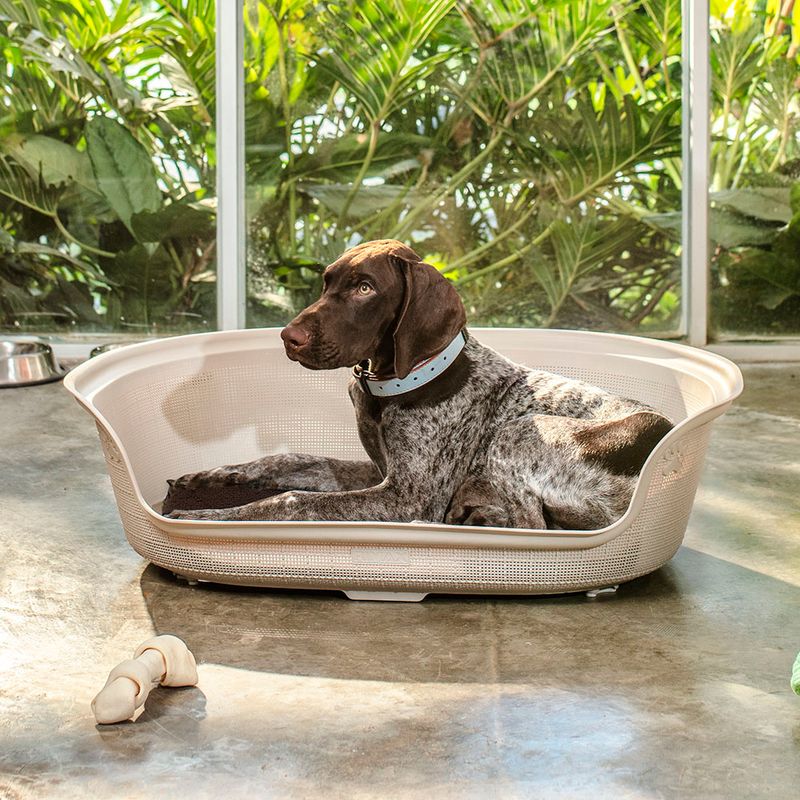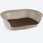 Sabemos que los favoritos del hogar merecen lo mejor, por eso, la nueva cama para perros, con su diseño confortable y ergonómico facilita el descanso de tu mascota. Su diseño decorativo y su textura la hace una cama elegante acorde a cualquier espacio del hogar. Incluye colchón con velcro para una correcta fijación a la base y tacones antideslizantes para garantizar una excelente estabilidad. Es ideal para perros de razas medianas con un peso inferior a 35 kilos y un largo máximo de 70 cm.