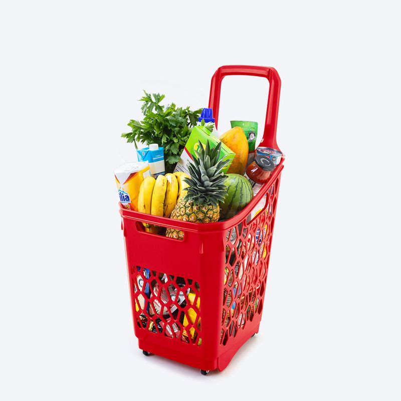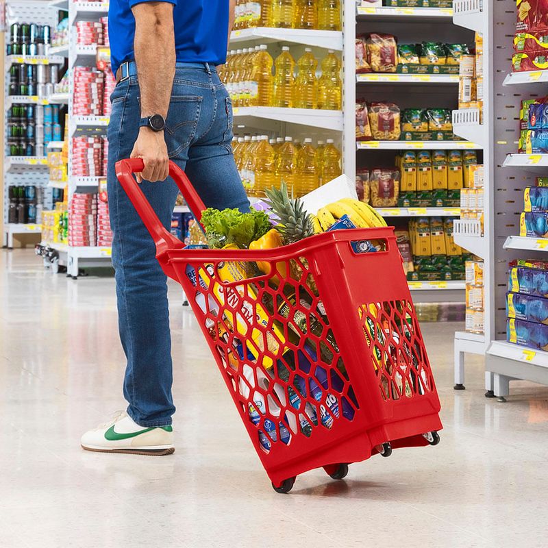 Gran Capacidad: Con 65 litros de capacidad, ofrece amplio espacio para transportar una variedad extensa de productos, ideal para compras grandes.