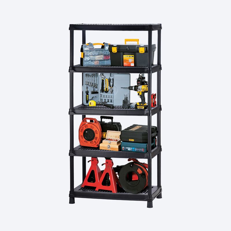 Estantería 18" de 5 niveles: Cinco niveles espaciosos con diseño ventilado, ideales para organizar herramientas, cajas o productos. Fácil de montar y ubicar en cualquier espacio.