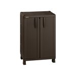 Armario Mediano Rattan: Diseño compacto y funcional con gran capacidad de almacenamiento. Puertas con seguro y entrepaños ajustables que se adaptan a diferentes tamaños de objetos.