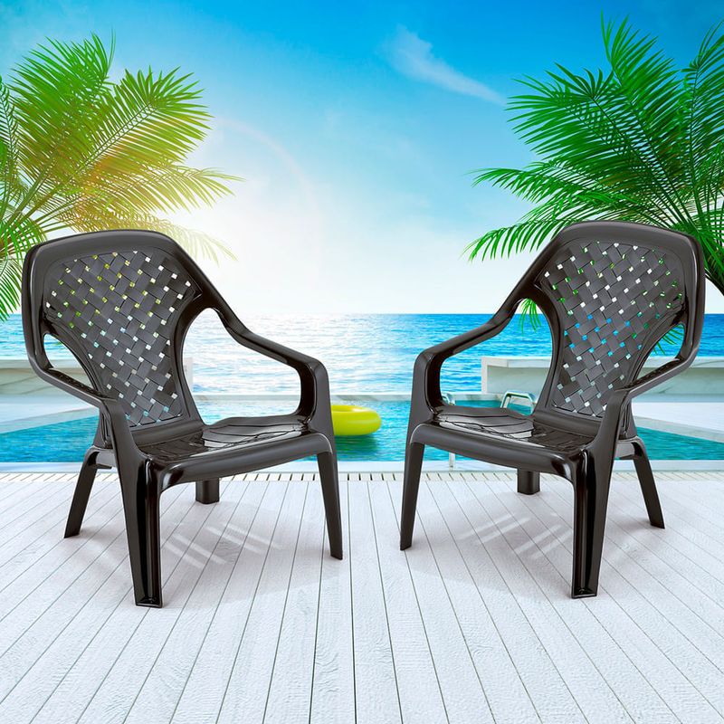 Silla playera plástica con soporte para brazos . Espaldar alto y diseño ergonómico. Ideal para playas, piscinas y espacios exteriores y semi-exteriores ya que cuenta con filtro UV .