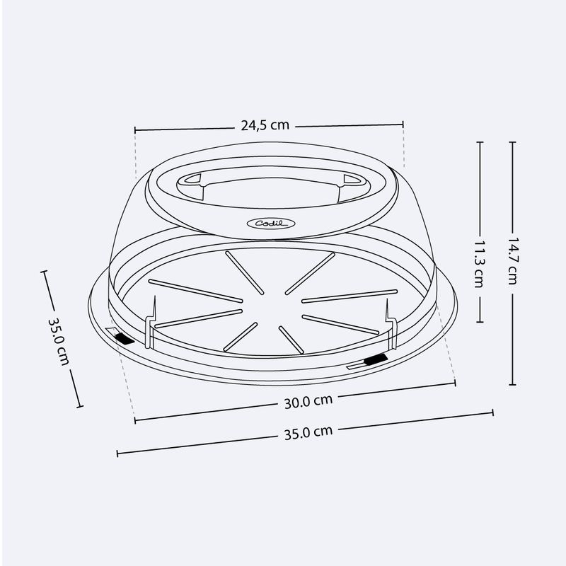 Tortera para postres, pasteles y tortas húmedas; base reversible y bordes altos que evitan los derrames. Con manija para fácil transporte y cerraduras para asegurar la tapa.
